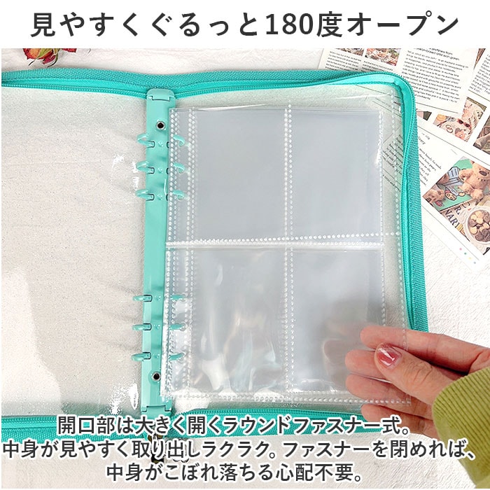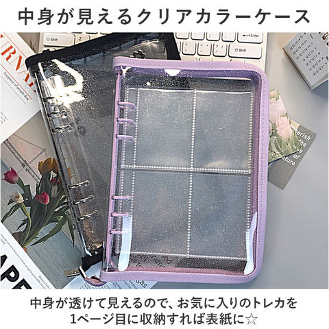 | 商品説明 | 大切なトレカをおしゃれに保管♪可愛らしいクリアカラーの「トレカケース」が新登場。【中身が見えるクリアカラーケース】ラメ感をプラスしたクリアなケース。中身が見えるので、お気に入りのトレカを1ページ目に収納すれば表紙に☆【見やすくぐるっと180度オープン】開口部は大きく開くラウンドファスナー式。中身が見やすく取り出しラクラク。ファスナーを閉めれば、中身がこぼれ落ちる心配不要。【A5サイズのリフィル対応バインダー】内側中央に6つ穴を配置したバインダー。お手持ちのA5サイズのリフィル(クリアポケット)をカチッとひとまとめ。【持ち運びも収納もラクラク】バッグに収納しやすく、自宅に置いておく時も場所を取らずスッキリ保管できサイズ感。【お気に入りを選べるカラー】自分の好みや推しカラーをチョイス☆コレクションが増えたら、色違いで揃えるのもおすすめ。フラワー型の引き手もワンポイントに。 |