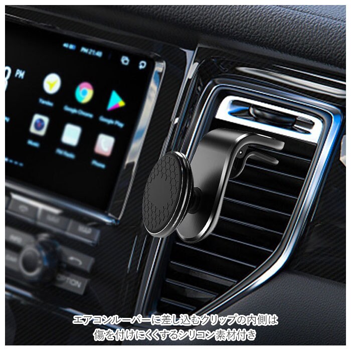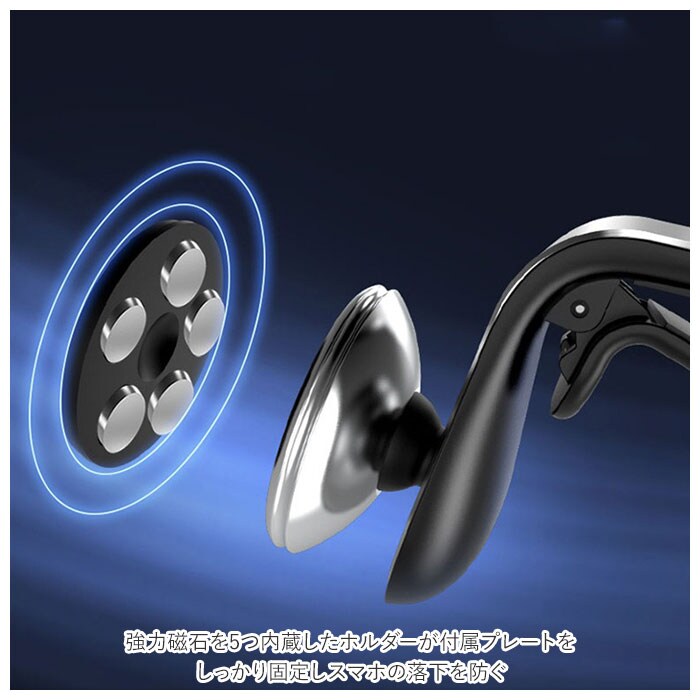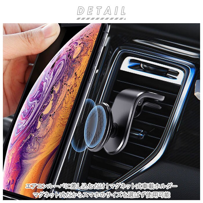 | 商品説明 | エアコンルーバに差し込むだけ!マグネット式車載ホルダー。付属プレートをスマホに装着させるだけの簡単仕様。エアコンルーバーに差し込むクリップの内側は傷を付けにくくするシリコン素材付き。強力磁石を5つ内蔵したホルダーが付属プレートをしっかり固定しスマホの落下を防ぐ。マグネット式だからスマホのサイズを選ばず使用できるのが嬉しい◎片手で付け外しができ、360度角度を調節できるから使い方自由自在! |