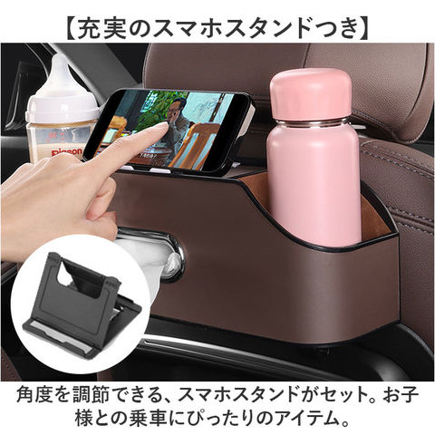 | 商品説明 | 【ゴチャつく車内を整理整頓◎】ティッシュもドリンクもスマホもこれ1つに収納!「車用 収納 ティッシュケース」が登場。【後部座席をスッキリ整頓!】車内で使う小物をスッキリと収納してくれる優れモノ!ゴチャつく車内をキレイで便利に◎【すぐに使えてスタイリッシュ】専用フックつきなので、ヘッドレストに引っ掛けるだけですぐに使える!取り外しも簡単。【充実のスマホスタンドつき】角度を調節できる、スマホスタンドがセット。お子様との乗車にぴったりのアイテム。【手荷物フックつきが嬉しい!】下部には手荷物を引っかけられるフックを2つ搭載。荷物を床に置かなくてOKなのがポイント。【高級感のあるデザイン】車内に溶け込むシンプルなデザイン。シルバーパーツで高見え感UP!上品さが魅力。【汚れに強いから長く使える】撥水性のある素材で、水濡れにも強く、汚れにくい◎※完全防水ではありません。【他ページにてセット販売を実施中】後部座席それぞれに設置できる、2個セットも販売中 |
