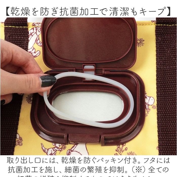 | 素材 | ・バッグ [表地]ポリエステル [裏地]EVA [中材]発砲綿 [持ち手]ポリプロピレン [ゴムベルト]ポリエステル ・ウェットティッシュフタ [本体・止具]ポリプロピレン [パッキン・バネ]シリコーンゴム |
