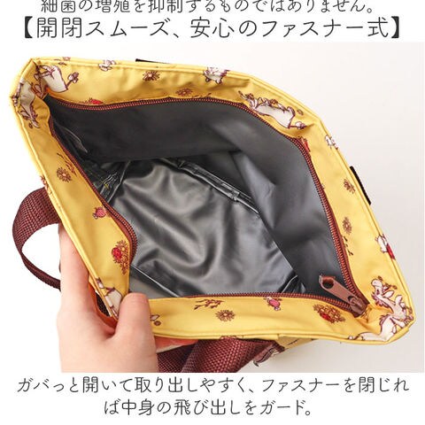 | 商品説明 | 【デザイン性も機能性も満足の相棒】使い勝手抜群&キャラクターデザインが可愛い「ウェットティッシュポケット付きランチバッグ」【ウェットティッシュを片手で取出し】フロントポケットにウェットティッシュをセット。手が汚れている時も、ワンプッシュオープン!【サイドからサクッと取り替え】ウェットティッシュポケットサイドのファスナーを開けて、簡単に取り替え可能。【乾燥を防ぎ抗菌加工で清潔もキープ】取り出し口には、乾燥を防ぐパッキン付き。フタには抗菌加工を施し、細菌の繁殖を抑制。(※)全ての細菌の増殖を抑制するものではありません。【開閉スムーズ、安心のファスナー式】ガバっと開いて取り出しやすく、ファスナーを閉じれば中身の飛び出しをガード。【保温保冷効果で持ち運びも安心】食材の温度変化を抑える、内側シルバーコーティング。オールシーズン大活躍◎【普段使いしやすいちょどいいサイズ】しっっかりとマチを設け、安定した状態で持ち運び。手軽に持ち出しやすい大きさ。【みんな大好き♪人気キャラクター柄】外側全体に、キャラクターの絵柄をプリント。プレゼントにもおすすめ!【ポケット仕様】外側:ウェットティッシュポケット×1(サイドファスナー&フタ付き) |