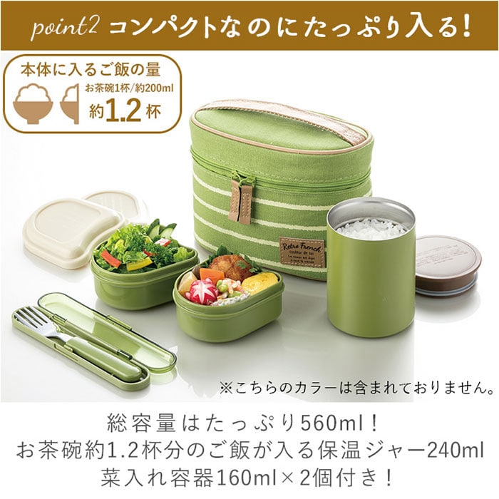 | 容量 | [実容量]560ml (保温ジャー:240ml、菜入れ160ml×2) |