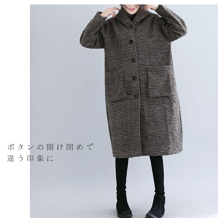 | 商品説明 | ベーシックなチェック柄がレトロな雰囲気♪「レディースコート」が登場。ひざ下のロング丈だから重量感もたっぷりなので、しっかりと暖かい着心地もGood。小さめのフードはもたつかず、顔周りをスッキリ見せてくれるのが◎フロント両側には、手袋を付けた手もすっぽり入る大きさのマチのあるポケット付き。シンプルな大き目ボタンが、デザインのポイント。 |