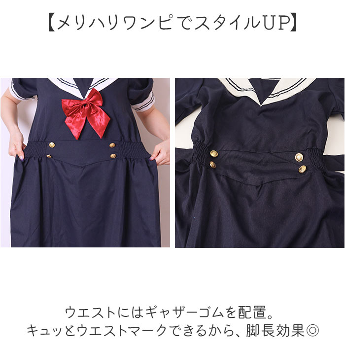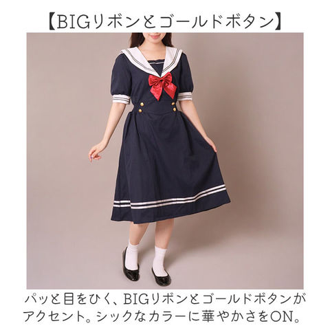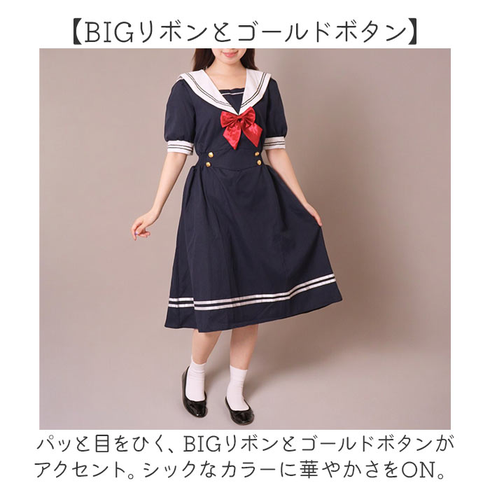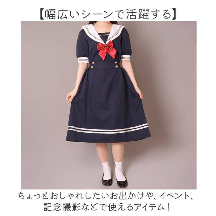 | 商品説明 | 【キュートなセーラー襟がポイント☆】お出かけからイベントまでOK!「セーラー ワンピース」が登場。【長めの丈感で上品さをプラス】ひざが隠れるほどの、丈感がGOOD。制服風のワンピースだけど、大人っぽい印象に仕上がる♪【BIGリボンとゴールドボタン】パッと目をひく、BIGリボンとゴールドボタンがアクセント。シックなカラーに華やかさをON。【着心地は軽くてラクチン】見た目よりも軽い着心地。風通しのよい生地で、暑い季節も快適に着られる。【メリハリワンピでスタイルUP】ウエストにはギャザーゴムを配置。キュッとウエストマークできるから、脚長効果◎【幅広いシーンで活躍する】ちょっとおしゃれしたいお出かけや、イベント、記念撮影などで使えるアイテム! |