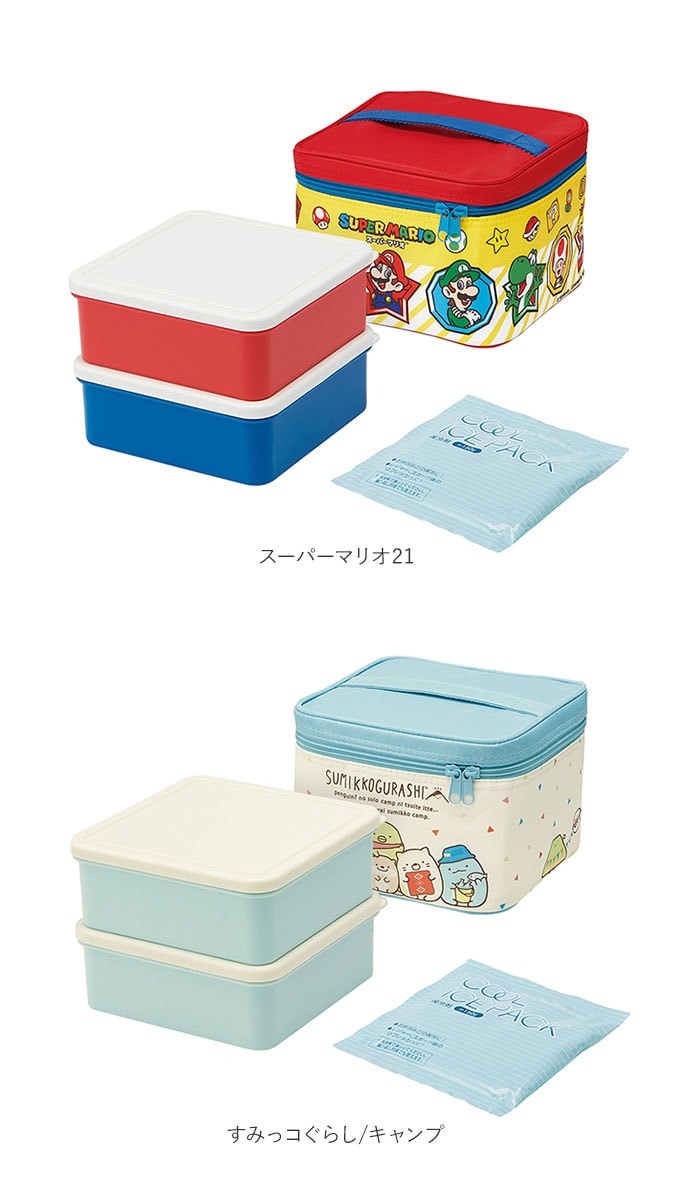 | 商品説明 | ピクニックなど、ちょっとしたお出かけにぴったりの「保冷バッグ付 行楽ランチセット」入れ分けできる2つのシールランチ容器と、取り外し可能な保冷トレイ保冷剤保冷バッグの、充実セット!(※[容量]保冷トレイ保冷剤無し:1300ml/保冷トレイ保冷剤有り:940ml)保冷剤付なので、停電非常時の保冷ケースとしても使用可能。ランチセットをコンパクトに収納できる保冷バッグは、アルミ蒸着仕様になっていて冷気を逃がしにくい♪開口部は出し入れしやすい、ダブルファスナータイプ。小物の収納に便利なメッシュポケット付き。可愛いキャラクターとカラフルな色使いで、ランチタイムが賑やかに♪ |