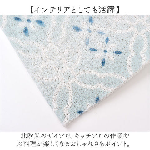 | 商品説明 | 【ママさんの強い味方】水と汚れに強いのが嬉しい♪ママさんに嬉しいキッチンマットが発売☆【サッとひと拭きで簡単キレイ】水や汚れに強い塩化ビニル素材。汚れても布巾などでサッとひと拭きするだけでキレイに。【燃え広がりにくい】万が一マットに着火した際でも燃え広がりにくい、防炎性・難燃性が高いのもGOOD。【お洗濯の手間ナシ】布地のマットとは違いお洗濯は不要♪手間だったお洗濯の時間を節約して、家事が時短に!【素足で踏んでも】カーペットのようにふわふわした柔らかさ。素足で踏んでも痛くない♪【安心の滑り止め付き】裏には滑り止めを施し、フローリングやタイル張りの上でも滑りにくく安心。【インテリアとしても活躍】北欧風のザインで、キッチンでの作業やお料理が楽しくなるおしゃれさもポイント。【型崩れしにくい】しっかりとした材質で毎日踏んでもへたりにくく長く使える。【はさみで好きなサイズに】置きたい場所に合わせて好きなサイズにカット可能。 |