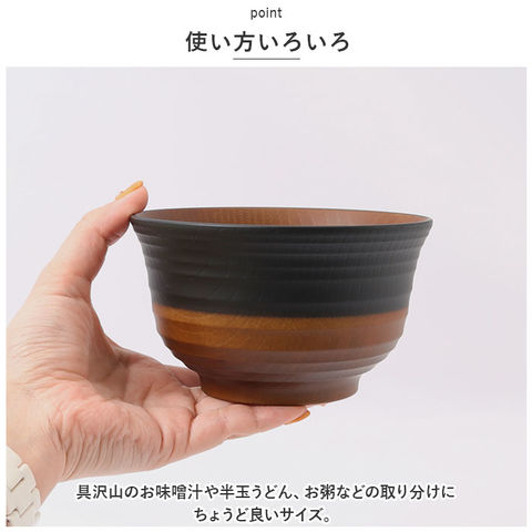 | 商品説明 | 日本ならではの伝統色を使用した、美しいどんぶり椀「にっぽん伝統色 羽反塗分 丼」が登場。【モダンなデザイン】和の雰囲気を残しつつ、落ち着きのある伝統色をプラス。どのジャンルの料理にも合わせやすく、家族色違いで揃えるのもおすすめ。【使い方いろいろ】具沢山のお味噌汁や半玉うどん、お粥などの取り分けにちょうど良いサイズ。【取り扱いやすい】安心の日本製&軽くて割れにくい素材。お子さまやご年配の方まで安心して使えるのが嬉しいポイント。【温めOK】電子レンジの使用が可能。帰りが遅い家族分の温め直しもできちゃう!【お手入れがラクチン】うれしい食洗機対応で、忙しい毎日の味方★【収納場所を有効活用】スタッキングできるので、収納棚でも場所を取らずに省スペース♪【新生活のお供に】これから新生活を始める方、どんぶり椀を新調したい方にもぴったり。 |