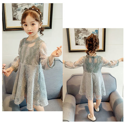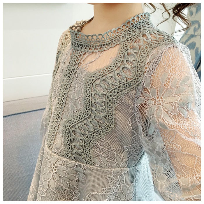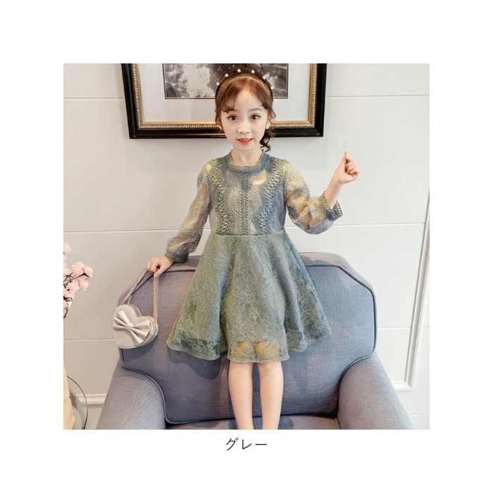 子供 ワンピース レース 春夏秋 kdress6059【グレー】【110cm】