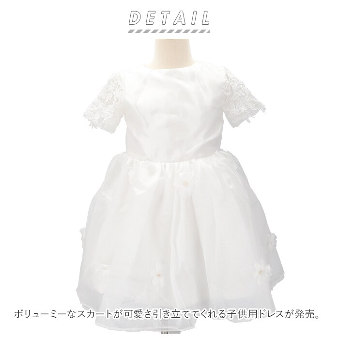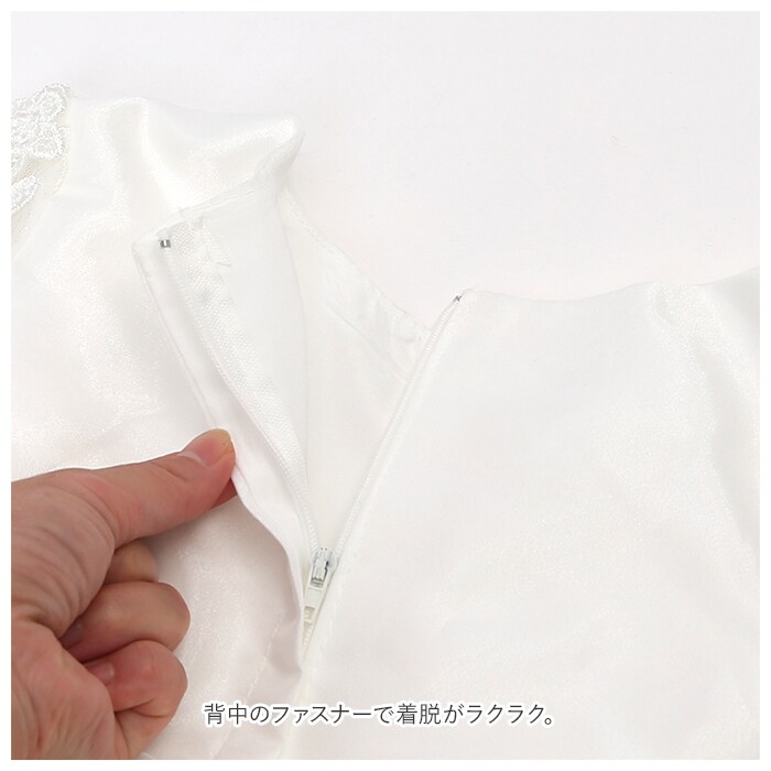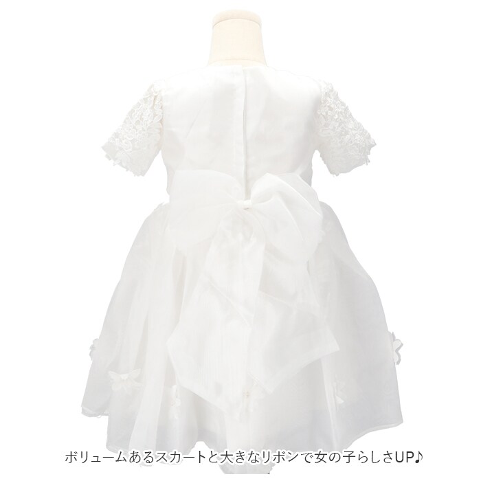 | 商品説明 | ボリューミーなスカートが可愛さ引き立ててくれる子供用ドレスが発売。袖部分には、透け感のあるレース素材を使用。ボリュームあるスカートと大きなリボンで女の子らしさUP♪リボンは安全ピンで簡単に着脱ができ、コーデや気分によってスタイルを変えられる。背中のファスナーで着脱がラクラク。スカートのチュール部分にはお花が付いており、よりキュートな印象に。裏地はしっかりとした厚みがありインナーが透けないのもポイント。90cm~130cmまで幅広いサイズ展開で姉妹でお揃いで着られるのも魅力!発表会や結婚式、パーティーなどで大活躍! |