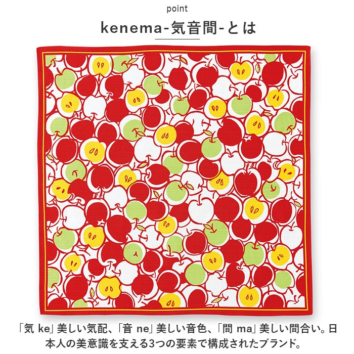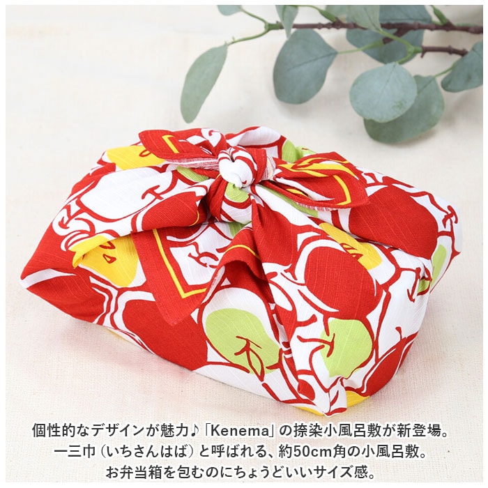 | 商品説明 | 個性的なデザインが魅力♪「Kenema」の捺染小風呂敷が新登場。【kenema-気音間-とは】・「気 ke」美しい気配、「音 ne」美しい音色、「間 ma」美しい間合い。日本人の美意識を支える3つの要素で構成されたブランド。【お弁当包みとして活躍】一三巾(いちさんはば)と呼ばれる、約50cm角の小風呂敷。お弁当箱を包むのにちょうどいいサイズ感。【優しい肌触り】綿100%素材を使用した、安心の日本製。【捺染小風呂敷】鮮やかで美しい色彩の表現が可能な反応染料を使用し、布地に模様を印刷。デザインの輪郭がはっきりと表現できるのがポイント。【豊富なバリエーション】毎日のランチタイムがより楽しみになること、間違いなし★デザイン違いで揃えるのもおすすめ。【おしゃれなインテリアとして】キッチンの家電や細々したものの目隠しにも♪そっと掛けておくだけで、空間のアクセントに。 |