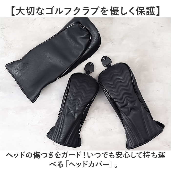 | 商品説明 | 【大切なゴルフクラブを優しく保護】ヘッドの傷つきをガード!いつでも安心して持ち運べる「ヘッドカバー」。【積み下ろしや移動時の心配を軽減】車からの積み下ろしやクラブの出し入れによる衝撃、ラウンド移動中の振動などから守るカバー。【サッと被せるだけの簡単装着】ヘッドにフィットする形状で、着脱がスムーズ。クラブ同士の直接的な接触も防止。【落ち着きのある大人なデザイン】表面は本革のように柔らかなPU素材。同色のステッチや、星型デザインが程よいアクセント。【しっとり起毛感のある内生地】内側はふんわりとした起毛素材。滑らせるように出し入れしやすく、優しく包み込んでくれる◎【拭き取るだけでお手入れもラクラク】本革のような、面倒なお手入れは不要。汚れたり不意の雨に少し濡れた際もサッと拭き取り。(※1)防水仕様ではありません。【タイプに合わせて選べる3種】ドライバー・フェアウェイウッド・ユーティリティの3種類。同じデザインのカバーで統一感を。【ひと目でわかる番手タグ付き】フェアウェイウッド・ユーティリティには、番手タグをプラス。簡単に操作できるダイヤル式。(※2)フェアウェイウッド:3、4、5、7、X/ユーティリティ:U2、U3、U4、U5、U6、UX |