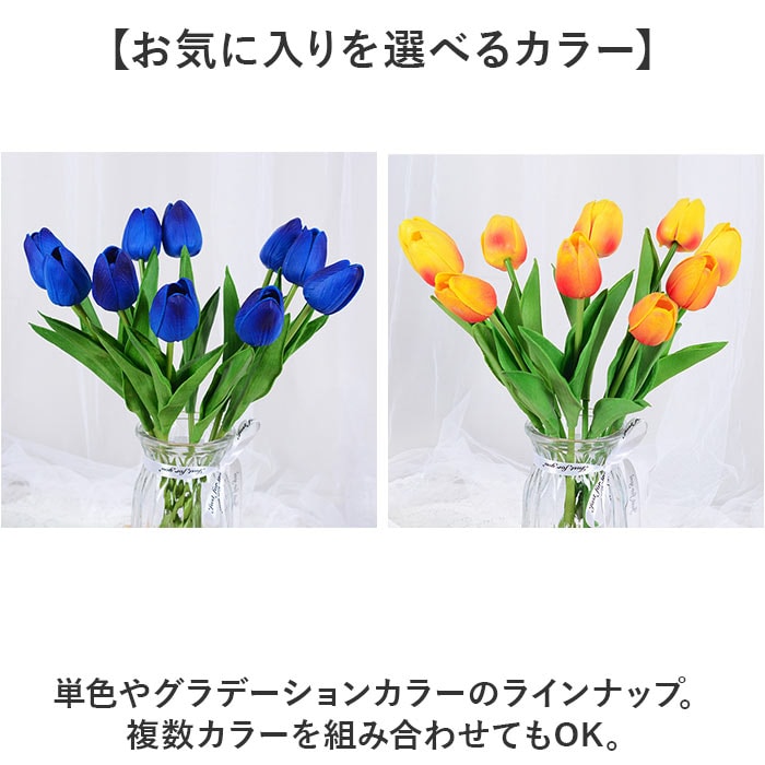 | 商品説明 | 【空間に彩りをプラスして華やかに】手軽に飾れて、お部屋のアクセントに。「チューリップの造花」10本セットが新登場。【生花をリアルに再現した造花】まるで本物のような仕上がり。お手持ちの花瓶に飾るだけで、明るい雰囲気を演出。【水やり不要でお手入れいらず】生花のようなお手入れは必要なし。枯れることなく、気軽にお花を取り入れられるのが嬉しい♪【程よいボリュームの10本セット】食卓や玄関など!場所を選ばず飾りやすく、存在感もある10本セット。【ウェディングシーンの小物使いにも】ウェルカムスペースなどに飾るのもおすすめ。ブーケのように装飾したり、アレンジ自在。【お気に入りを選べるカラー】単色やグラデーションカラーのラインナップ。複数カラーを組み合わせてもOK。 |