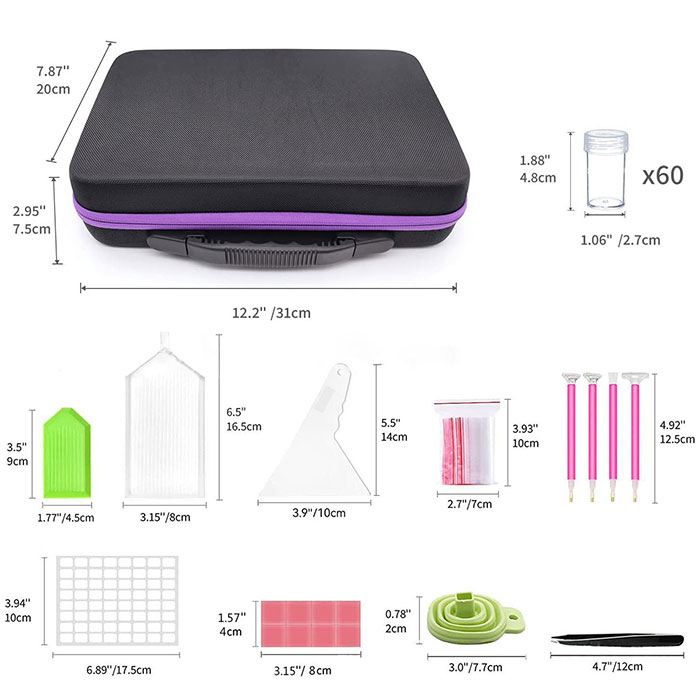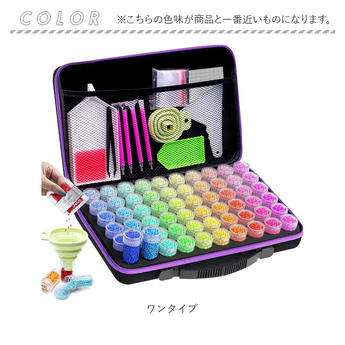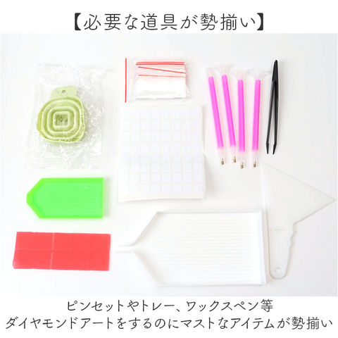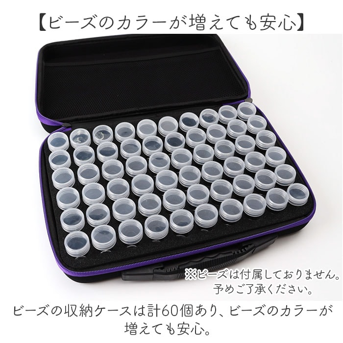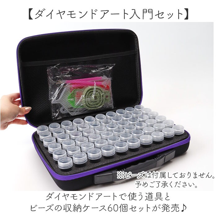 | 商品説明 | 【ダイヤモンドアート入門セット】ダイヤモンドアートで使う道具とビーズの収納ケース60個セットが発売♪【必要な道具が勢揃い】ピンセットやトレー、ワックスペン等ダイヤモンドアートをするのにマストなアイテムが勢揃い【ビーズのカラーが増えても安心】ビーズの収納ケースは計60個あり、ビーズのカラーが増えても安心。【一目でカラーがわかる】ビーズの収納ケースは、すぐに使いたい色がどこにあるのか分かるクリア仕様♪【ひとまとめにできる保管ケース】収納や保管に便利な専用のケース入り。紛失防止にも。【メッシュポケット付き】ツールや小さいキャンバスの収納に便利なメッシュポケット付き。【ポケット仕様】メッシュポケット×1 |