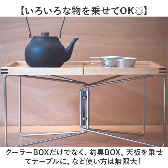 | 商品説明 | 【コンパクトに折り畳みOK】クーラーBOXを浮かせて遮熱効果◎「折り畳み クーラースタンド」が登場。【地面からの熱をシャットアウト】クーラーBOXを浮かせることで、地面からの熱を遮断◎保温時間を最大限にキープできる!【コンパクトに持ち歩きが可能】スリムに折りたためるので、持ち運びがしやすい。使わないときも省スペースに収納可能。【すぐに使えるシンプル設計】広げるだけですぐに使えるシンプルさが魅力。工具など一切不要なお手軽アイテム。【いろいろな物を乗せてOK◎】クーラーBOXだけでなく、釣具BOX、天板を乗せてテーブルに、など使い方は無限大! |