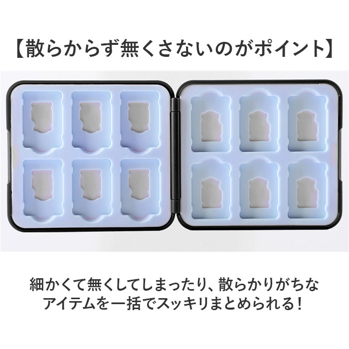 | 商品説明 | 【散らかりがちなゲームソフトを収納】ゲームカードやmicroSDがぴったり入る!「カードケース 12枚収納」が登場。【大切なゲームカードなどを守る!】ゲームカードとmicroSDがぴったりとフィットするケース。中でガチャガチャしないのがGOOD。【散らからず無くさないのがポイント】細かくて無くしてしまったり、散らかりがちなアイテムを一括でスッキリまとめられる!【衝撃を吸収するABS樹脂素材を使用】ケースの外側には耐久性のある素材を使用。うっかり落としてしまっても安心の作り。【ばっちり閉まるマグネットタイプ】スムーズに開閉でき、閉め忘れの心配がいらないラクラクマグネットタイプを採用。【無駄のないコンパクトフォルム】薄型で片手に収まるコンパクトなサイズ感が嬉しい!持ち運びもラクチンでかさばらない。【お子様も大人も満足のおしゃれさ】年齢性別を問わずに使える、スタイリッシュなデザインが魅力。ゲームにぴったりのカラフルさ☆ |