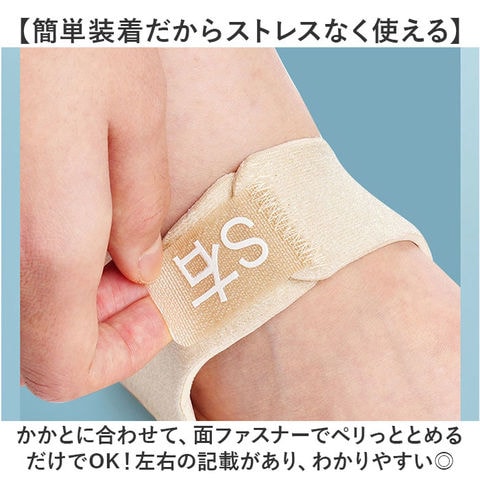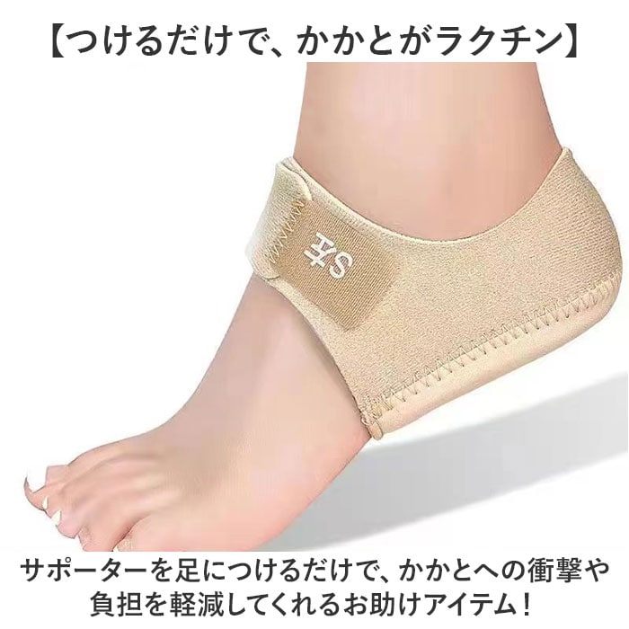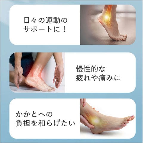 | 商品説明 | 【足裏のツライ!をサポート】厚めのシリコンが衝撃を吸収◎「かかとサポート 左右セット」が登場。【つけるだけで、かかとがラクチン】サポーターを足につけるだけで、かかとへの衝撃や負担を軽減してくれるお助けアイテム!【簡単装着だからストレスなく使える】かかとに合わせて、面ファスナーでペリっととめるだけでOK!左右の記載があり、わかりやすい◎【通気性が良いからムレ知らず】直接素足に履いても、ストッキングや靴下の上から履いてもOK。靴の中でもムレにくい。【誰にでもフィットする伸縮性】男女問わず使えるサイズ感。グンと伸びて足にフィットするから、スポーツ時にも◎【いつでも清潔さをキープ】水に強い素材を使っているので、汚れが気になったらお洗濯が可能。いつでも衛生的。【いろいろなシーンで活躍】慢性的な足の疲れや痛み、スポーツや仕事で生じる負担、かかとのひび割れなどに! |