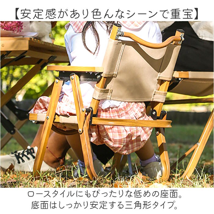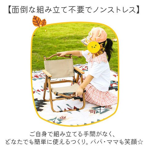| 商品説明 | 【手軽に携帯できてアウトドアの味方】必要な時にサッと広げて座れる◎持ち運びに便利な「子供用アウトドアチェア」が新登場。【車などに忍ばせやすいスリム設計】折りたたむとスリムに!車に積みやすく、使わない時の収納も、場所を取らずに省スペース。【面倒な組み立て不要でノンストレス】ご自身で組み立てる手間がなく、どなたでも簡単に使えるつくり。パパ・ママも笑顔☆【耐久性があり長く愛用できる】座面は耐久性や通気性に優れたオックスフォード生地。合金や木を使ったフレームで丈夫な仕様。【ゆったり座れて快適な使用感】程よい角度の背もたれと、肘掛け付き。屋外でもリラックスした状態でアウトドアを楽しめる♪【安定感があり色んなシーンで重宝】ロースタイルにもぴったりな低めの座面。底面はしっかり安定する三角形タイプ。【空間に馴染むシンプルデザイン】温かみのある風合いがおしゃれ☆キャンプやピクニック、自宅用など屋内外問わず活躍。 |