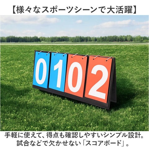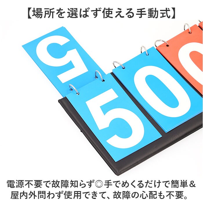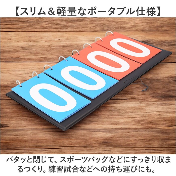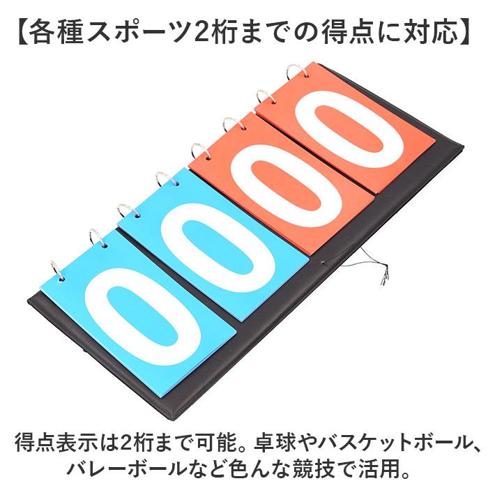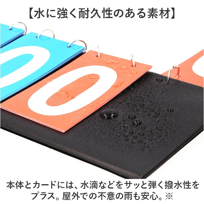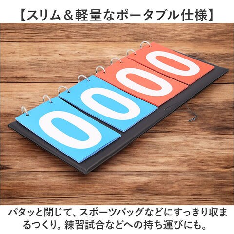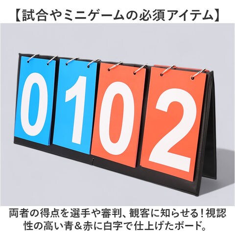 | 商品説明 | 【様々なスポーツシーンで大活躍】手軽に使えて、得点も確認しやすいシンプル設計。試合などで欠かせない「スコアボード」。【試合やミニゲームの必須アイテム】両者の得点を選手や審判、観客に知らせる!視認性の高い青&赤に白字で仕上げたボード。【各種スポーツ2桁までの得点に対応】得点表示は2桁まで可能。卓球やバスケットボール、バレーボールなど色んな競技で活用。【場所を選ばず使える手動式】電源不要で故障知らず◎手でめくるだけで簡単&屋内外問わず使用できて、故障の心配も不要。【リング式カードは取り外しOK】カードは本体からすぐに取り外せるつくり。両面仕様で、スコア減らしなどもスムーズに対応。【省スペースで安定性もキープ】本体底に糸を付け、サッと開く三角型。場所を取らず、安定した状態で置けるのが嬉しい!【水に強く耐久性のある素材】本体とカードには、水滴などをサッと弾く撥水性をプラス。屋外での不意の雨も安心。(※)完全防水ではありません。【スリム&軽量なポータブル仕様】パタッと閉じて、スポーツバッグなどにすっきり収まるつくり。練習試合などへの持ち運びにも。 |