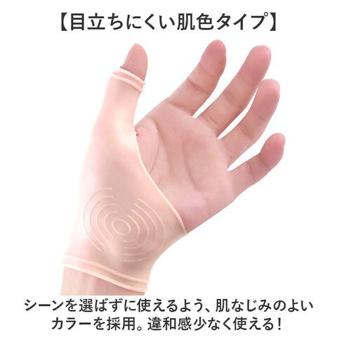 | 商品説明 | 【手指のトラブルをサポート◎】破れにくく丈夫でぴったりフィット!「親指サポート」が登場。【あらゆる手指のトラブルに】関節の痛みや、バネ指、腱鞘炎などで手を動かすのがツライ。そんな時のサポートアイテム☆【つけたまま水仕事もOK】SEBS素材を使用。シリコンのような肌触りで、水濡れもOK!家事やお仕事がはかどる仕様。【湿布のはがれ防止にもお役立ち】薄くフィットするので、湿布の上につけるのもGOOD。ズレにくいから、はがれ防止対策にも◎【目立ちにくい肌色タイプ】シーンを選ばずに使えるよう、肌なじみのよいカラーを採用。違和感少なく使える!【自分のサイズを選べる!】フィット感が大切だから、サイズ展開あり。よりフィット感を高めることが可能! |