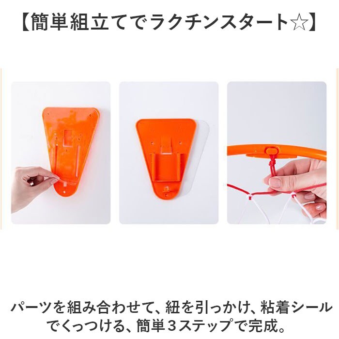 | 商品説明 | 【簡単組立てですぐに使える!】遊びも練習もお任せ☆「室内用バスケットゴール」が登場。【簡単組立てでラクチンスタート☆】パーツを組み合わせて、紐を引っかけ、粘着シールでくっつける、簡単3ステップで完成。【場所や高さをお好みでチェンジ!】ペタっと貼るだけなので、どこにでも設置OK。お子様の身長に合わせて低めに設置も可能◎【小さなお子様から大人まで♪】年齢を問わずに楽しめるアイテム!お子様のボール遊び用から本格的な練習用まで幅広く活躍。【類似商品を多数ご用意】他ページにてボールやセット商品も販売中!お好みに合わせたアイテムをチョイス。 |