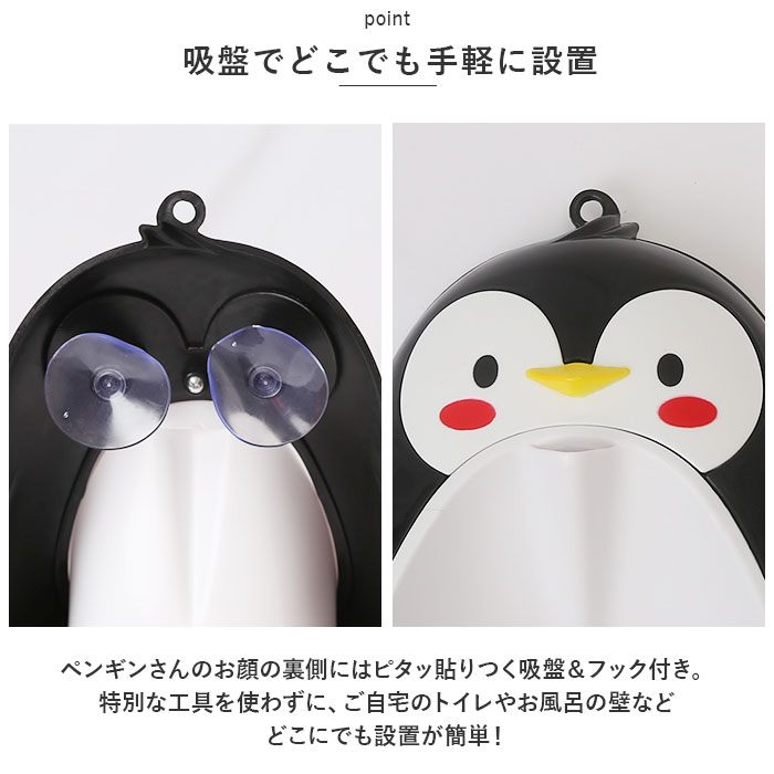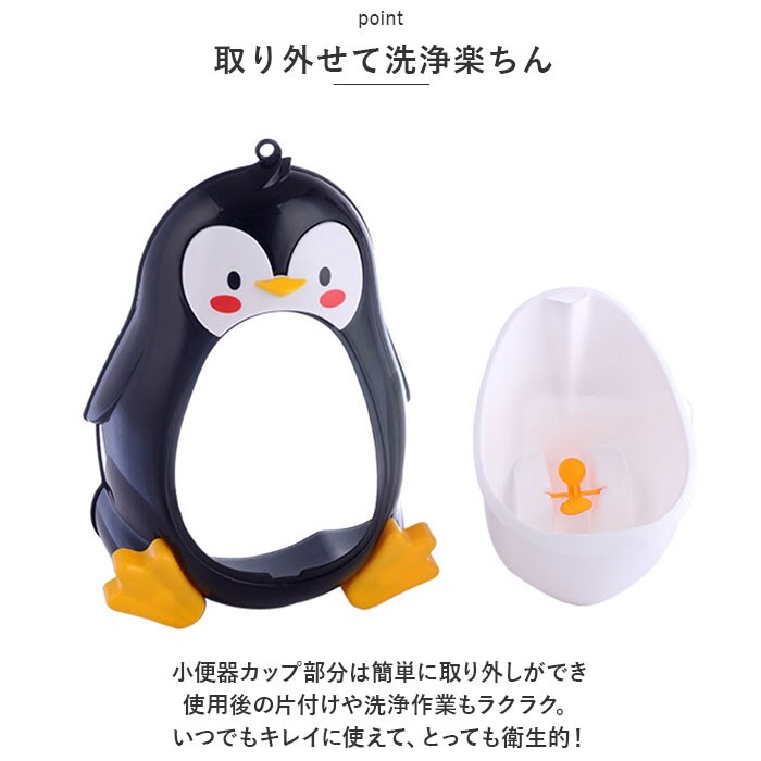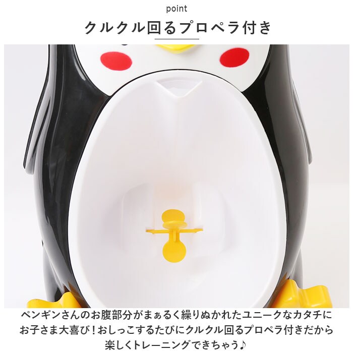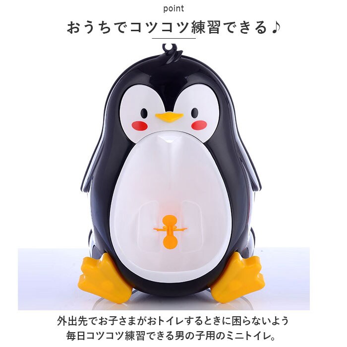 | 商品説明 | 可愛らしいペンギンさんと一緒にトイレトレーニング!「子ども用デザイントイレ(男の子用)」が新登場。【おうちでコツコツ練習できる♪】外出先でお子さまがおトイレするときに困らないよう、毎日コツコツ練習できる男の子用のミニトイレ。【クルクル回るプロペラ付き】ペンギンさんのお腹部分がまぁるく繰りぬかれたユニークなカタチに、お子さま大喜び!おしっこするたびにクルクル回るプロペラ付きだから、楽しくトレーニングできちゃう♪【取り外せて洗浄楽ちん】小便器カップ部分は簡単に取り外しができ、使用後の片付けや洗浄作業もラクラク。いつでもキレイに使えて、とっても衛生的!【吸盤でどこでも手軽に設置】ペンギンさんのお顔の裏側にはピタッ貼りつく吸盤&フック付き。特別な工具を使わずに、ご自宅のトイレやお風呂の壁など、どこにでも設置が簡単!【成長に合わせて高さ調節】お子さまの成長に合わせて、吸盤で高さが自在に調整できるため、長く使えるのも嬉しいポイント! |