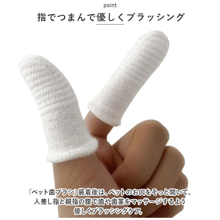 | 商品説明 | 指先でマッサージしながら、優しくデンタルケア。指サックタイプで使いやすい「ペット用歯ブラシ(2枚1組)」が新登場。【ペットの歯周病対策に!】口腔ケアが大切なのは人間もペットも同じ!虫歯や歯石・歯周病を防いで、ペットの健康維持や病気の予防に役立つペットケアグッズ。【装着簡単、2本指デザイン】指サックのカタチをした2枚の生地を、それぞれ「人差し指」と「親指」に被せるだけで装着カンタン!生地がぐ~んと伸びるので、指先に優しくフィット。(※人差し指部分と親指部分の2枚1組セットです。)【指でつまんで優しくブラッシング】・「ペット歯ブラシ」装着後は、ペットのお口をそっと開いて、人差し指と親指の腹で歯や歯茎をマッサージするよう優しくブラッシングケア。【指先のリブが歯垢を除去】ペットのお口の中を傷つけないソフトな生地感に、耐摩耗性に優れたナイロン綿混紡繊維を使用。指先から指の腹部分のリブ状の畝が、歯垢や食べカスをすっきり除去。【歯の裏側にもリーチ】歯の表面と裏側を2本の指で挟んで、同時にケアできるのがこの「歯ブラシ」の最重要ポイント!一般的な歯ブラシでは磨きにくい歯の裏側にもしっかりリーチ。【こまめに洗って再利用可能】ブラッシング後は、やさしく手洗いすることで繰り返し使用することが可能。環境にもお財布にも優しく、とってもエコ。【ケアしながらスキンシップ】日頃から口の中のブラッシングを心がけることで、お口の中の健康維持だけでなくペットと飼い主さんのスキンシップ向上にも♪充実のペットライフをサポートするお役立ちアイテム。 |
