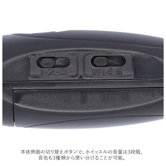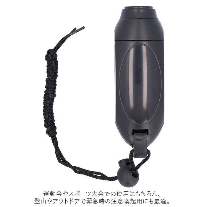 | 商品説明 | 口で吹かないから、衛生的!スポーツやイベントで活躍する電子ホイッスルが新登場。ボタンをワンプッシュするだけで120dBの大音量で警告音が発信できる、電池式マルチホイッスル。大きく息を吹きこんで音を鳴らす従来のホイッスルと違い、直接口で咥える必要がないので、ウィルス対策や衛生面でも安心。本体側面の切り替えボタンで、ホイッスルの音量は3段階、音色も3種類から使い分けることが可能。単4形乾電池3本使用。ホイッスル背面のカバーを取り外せば、電池交換も手間いらず。(※電池は別売りです。)運動会やスポーツ大会での使用はもちろん、登山やアウトドアで緊急時の注意喚起用にも最適。スポーツ競技で審判やラインズマンを務められるプロの方にもオススメ。首から掛けて使えるネックストラップ、に持ち運びに便利な専用収納袋が付属。 |