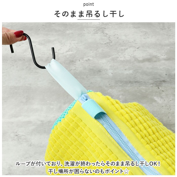 | 商品説明 | 靴を洗濯機でラクラクお手入れ♪靴用洗濯ネットが4点セットになって新発売♪【モップ内蔵】毛足の長いマイクロファイバー生地を内側に内蔵!靴をネットの中に入れて洗濯機にIN。水流でモップが汚れを落としてくれる仕組み。【傷・型崩れ防止】ネットに入れて洗うことで洗濯槽へのダメージや靴の型崩れを防止◎【そのまま吊るし干し】ループが付いており、洗濯が終わったらそのまま吊るし干しOK!干し場所に困らないのもポイント☆【ファミリーで】大きなサイズでお子さまからメンズのスニーカーまで入るサイズ感!ファミリーで使い回せるのも魅力的! |