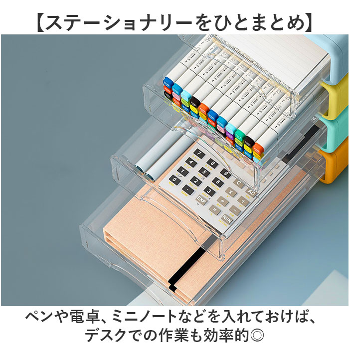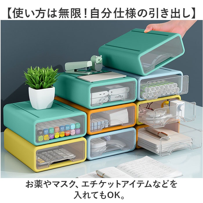 | 商品説明 | 【デスクの上をすっきり整理整頓】散らかりがちな小物が省スペースでまとまる「収納ボックス」が新登場。【置き場所を選ばないデザイン】無駄な装飾を省いたシンプルな引き出し。自宅のお部屋やオフィスにも置きやすいサイズ感。【サッと移動できる軽量設計】軽いプラスチック素材を使用。掃除の際なども、サクッと移動できて女性もお子さまも扱いやすい!【中身が見えるクリア窓仕様】引き出し部分は中身を確認しやすいクリアカラー。細々した物もすぐに見つかるつくり。【ステーショナリーをひとまとめ】ペンや電卓、ミニノートなどを入れておけば、デスクでの作業も効率的◎【増えがちなコスメの収納にも】アイシャドウやリップなど♪コンパクトなコスメも見やすく整頓でき、取り出しもラクラク。【使い方は無限!自分仕様の引き出し】お薬やマスク、エチケットアイテムなどを入れてもOK。【引き出し上にディスプレイOK】上部にペン立てを置いたり、ミニチュアの置物などを飾るなどお好みで。【アクセントになるカラーリング】お部屋に彩りをプラスできる、柔らかなナチュラルカラー。お気に入りをチョイス☆ |