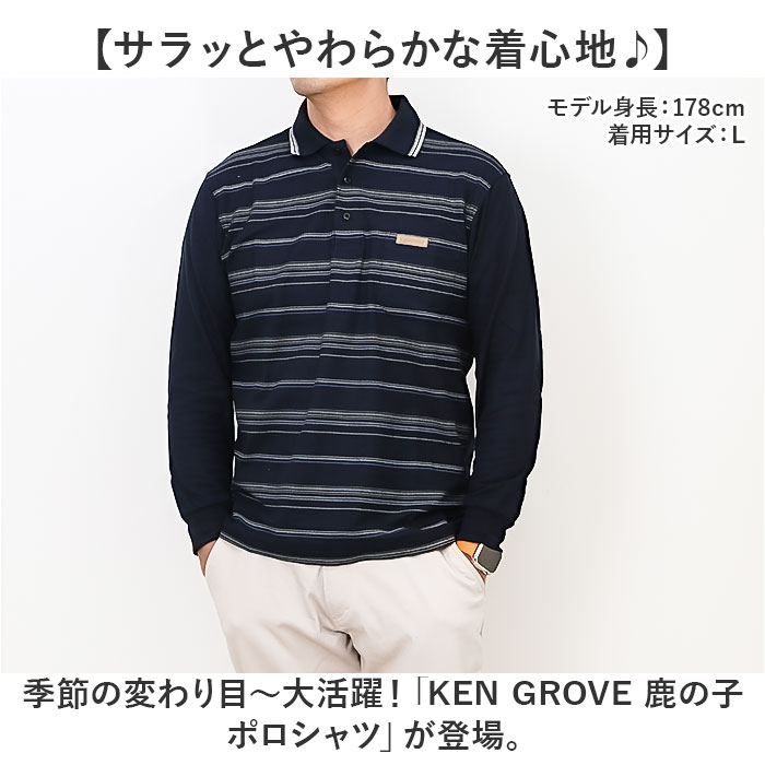 | 商品説明 | 【サラッとやわらかな着心地♪】季節の変わり目~大活躍!「KEN GROVE 鹿の子ポロシャツ」が登場。【着るだけで好印象にキマる!】爽やかさを感じる洗練されたデザインで、バッチリ好印象に!お好みのデザインをチョイス☆【こだわりの鹿の子生地】清涼感と通気性に優れた、凹凸のある編み方の鹿の子生地。サラっと感が続く、快適な着心地。【季節の変わり目に大活躍!】気温調節が難しい季節の変わり目に最適の、薄手の長袖タイプ。ヘビロテ間違いなしの1枚。【上品カジュアルでオンもオフもOK】お仕事にもお休みにも大活躍するシンプルさ。襟付きだから上品見せしたいシーンにもマッチ。【エイジレスで似合うアイテム】誰が着ても様になるのがポイント。お誕生日、父の日などのギフトにもオススメ。 |