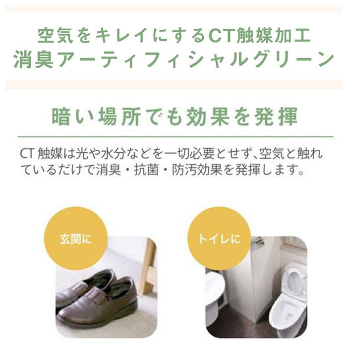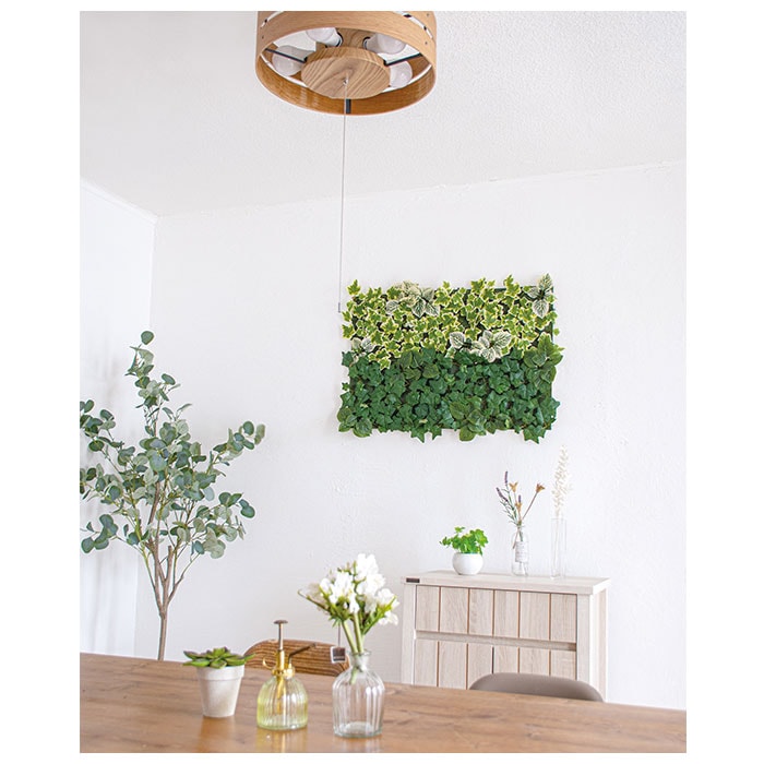 | 商品説明 | お部屋の空気をキレイに変えるウォールグリーン♪「エクリア 消臭アーティフィシャルグリーン」4個セットが発売。インテリアとしてお部屋に飾っておくだけで消臭・防汚・抗菌の効果が期待できるおしゃれなフェイクグリーン。見た目の華やかさだけではなく「CT触媒加工」が施された、機能的なフェイクグリーン。お部屋の消臭効果だけでなく、その抗菌作用で細菌やカビの増殖も防止!「CT触媒」とは、生体必須ミネラルに含まれる元素から厳選したミネラル複合体。安全性が高く人体にも無害なので、小さなお子様やペットのいるご家庭でも安心◎CT触媒の効果は、ホコリに埋もれない限り半永久的に効果を発揮!光のない暗い場所でも効果が続くため、お手洗いや玄関にも置きやすい♪水やりやメンテナンスの手間が少ないので、お仕事や家事で忙しい方にもぴったり。リビングはもちろん、玄関やキッチンなどインテリアのワンポイントに。画鋲や結束バンドで留めるだけのカンタン取り付け!お好みのサイズで使えるジョイント式で、4セット組み合わせて飾ることができる。手軽に空間を彩る、ウォールグリーン。オフィスやカフェにも馴染むリアルなデザインが魅力◎ |