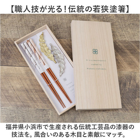 | 商品説明 | 【新しい門出のお祝いにぴったり】新生活のスタートに。食卓を彩る箸と箸置の「桐箱ギフト」が新登場。【ご夫婦やカップルでお揃いに】カラーの異なるお箸と箸置きのセット。2人仲良く使えて、毎日の食事がもっと豊かに。【高級感のある桐箱入りギフト】ナチュラルで美しい桐箱。特別感のある、上質な仕上がり。【職人技が光る!伝統の若狭塗箸】福井県小浜市で生産される伝統工芸品の漆器の技法を。風合いのある木目と素敵にマッチ。【テーブルのアクセントにも】マットでスタイリッシュな箸置き。存在感のある大きさで、華やかさアップ。【ご夫婦へ縁起の良い贈り物】・「幸せの橋渡し」の意味合いを持つお箸。支え合って過ごしていくご夫婦に、心からの祝福を。 |