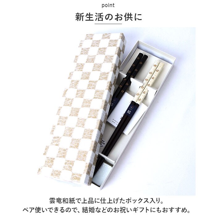 | 商品説明 | 毎日使う物だからこそ、こだわりを。お箸と箸置きのギフトセットが登場。【上品な箸と箸置きセット】上質な雰囲気漂う日本製の箸と箸置。風合いが異なるデザインから、お気に入りをチョイス♪【若狭塗の箸】福井県小浜市で生産される、伝統工芸品の漆器”若狭塗”の技法を用いたお箸。天然木の素地に塗装を施し、デザインにより食洗機の使用が可能。(※びいどろのみ塗装の種類が異なり、食洗機の使用は不可となります。)【美濃焼の箸置き】美濃焼は美濃国(現在の岐阜県)の東部地域で生産されてきた陶磁器。可愛らしいサイズ感で食卓のアクセントに。【新生活のお供に】雲竜和紙で上品に仕上げたボックス入り。ペア使いできるので、結婚などのお祝いギフトにもおすすめ。 |