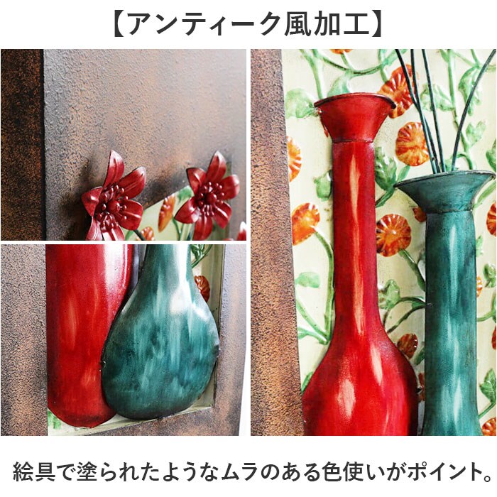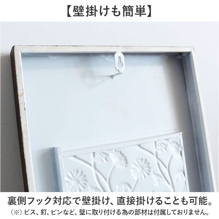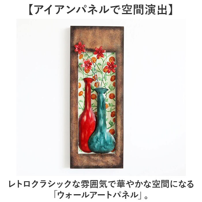 | 商品説明 | 【アイアンパネルで空間演出】レトロクラシックな雰囲気で華やかな空間になる「ウォールアートパネル」。【立体パネル】壁面に奥行きのある重厚感をプラス。【アンティーク風加工】絵具で塗られたようなムラのある色使いがポイント。【壁掛けも簡単】裏側フック対応で壁掛け、直接掛けることも可能。(※)ビス、釘、ピンなど、壁に取り付ける為の部材は付属しておりません。 |