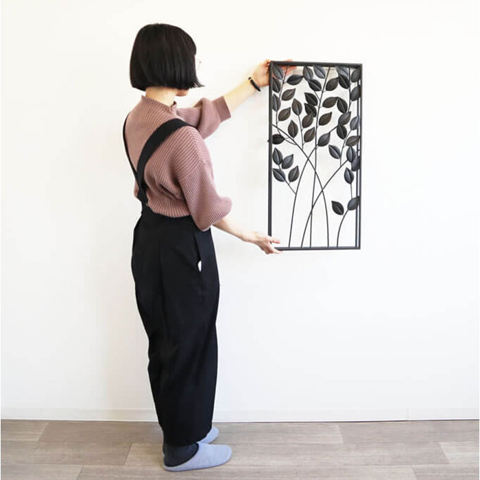| 商品説明 | 【おしゃれなリーフデザイン】自然をモチーフにしたモダンな「ウォールアートパネル」が登場。【スタイリッシュな空間演出】リビングや玄関をワンランク上の洗練された雰囲気に♪【立体デザイン】アイアン素材で奥行きのあるパネルはお部屋に存在感をプラス。【掛けるだけの簡単設置】フレーム裏両サイドに付いている金具を使用するか、本体を直接引っ掛けることも可能。(※)ビス、釘、ピンなど、壁に取り付ける為の部材は付属しておりません。 |