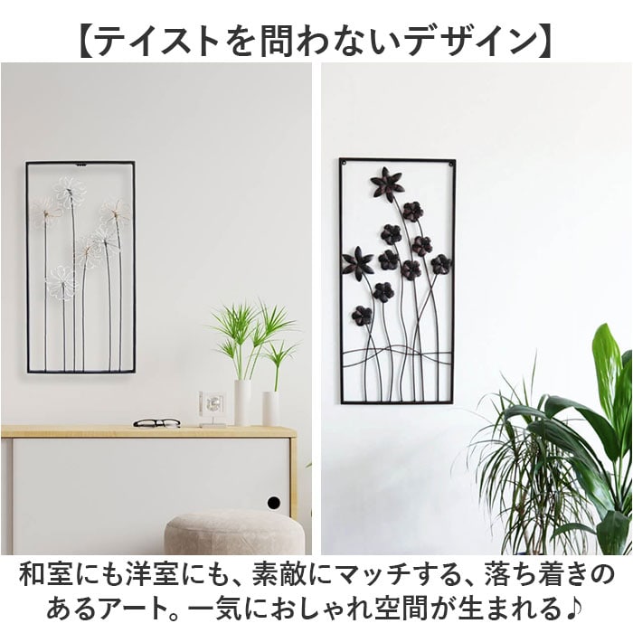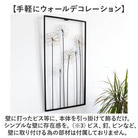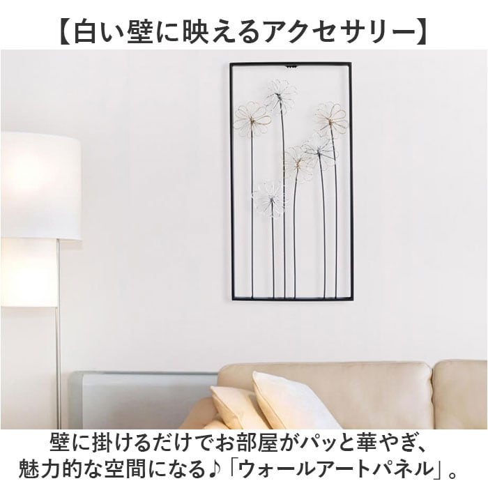 | 商品説明 | 【白い壁に映えるアクセサリー】壁に掛けるだけでお部屋がパッと華やぎ、魅力的な空間になる♪「ウォールアートパネル」。【テイストを問わないデザイン】和室にも洋室にも、素敵にマッチする、落ち着きのあるアート。一気におしゃれ空間が生まれる♪【古めかしいアンティーク仕上げ】擦り減ったようなアンティーク感を表現。場所を選ばず飾りやすい大きさ。(※1)1707の商品です。【風に揺れるような花をイメージ】フレームの空間を大きく使い、アートに仕上げた壁飾り。光の当たり具合で壁に影が映る♪(※2)2104の商品です。【手軽にウォールデコレーション】壁に打ったビス等に、本体を引っ掛けて飾るだけ。シンプルな壁に存在感を。(※3)ビス、釘、ピンなど、壁に取り付ける為の部材は付属しておりません。 |