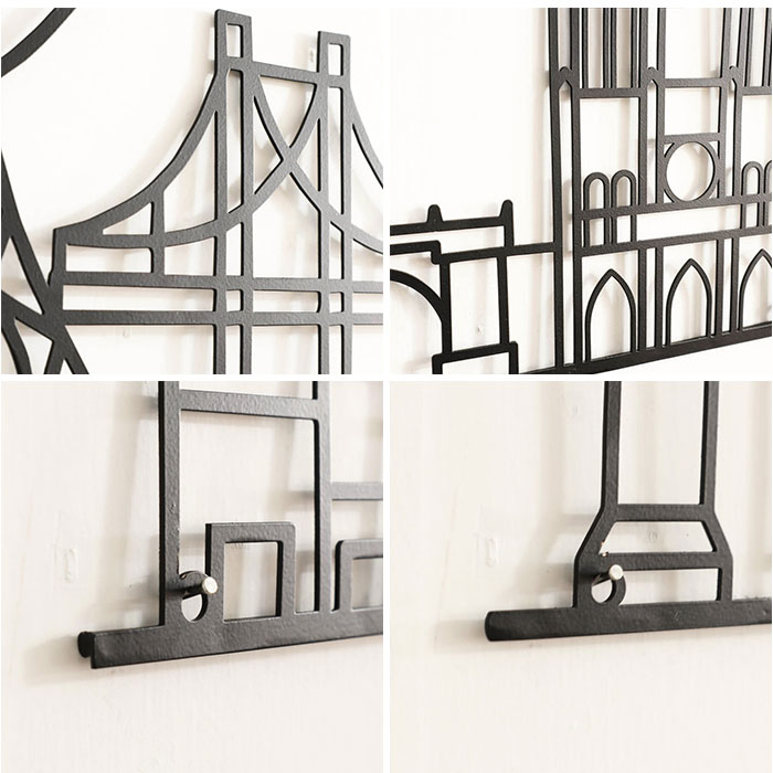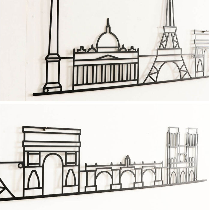 商品説明【白い壁に映えるアクセサリー】壁に掛けるだけで、オリジナリティ溢れる空間に。個性の光る「ウォールアート」。【スタイリッシュなランドマーク】パリと東京のランドマークを表現。お部屋に馴染む、無駄を省いたブラックアイアン仕上げ。【手軽にウォールデコレーション】壁に打ったビス等に、本体を引っ掛けて飾るだけ。シンプルな壁に存在感を。(※)ビス、釘、ピンなど、壁に取り付ける為の部材は付属しておりません。【大きめながらスリムなフォルム】大きさはありつつ、切り絵のようなウォールアート。リビングやキッチンにおすすめ!