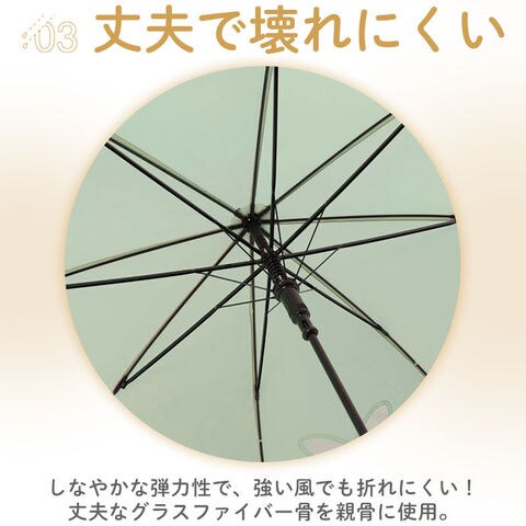 | 注意点 | お子様には保護者からご注意ください。製品には尖った部分があります。常に周囲の安全を確認してご使用ください。ステッキがわりに使用しないでください。振り回したり、投げたりしないでください。傘骨の構造部に手を触れないでください。手元、または骨の先端が壊れたまま使用しないでください。自転車運転中は使用しないでください。豪雨、強風時は破損する恐れがありますので使用しないでください。基準を超えた雨量によっては傘内部に水が浸透する場合があります。傘生地は色落ちする場合もありますので乾燥が充分でない傘を、服その他に接触させないでください。使用後は必ず陰干しをして乾燥させてください。傘を開く際、ネイルガードカバーを押さえると開きが固定されません。カバーに触れずに開く動作を行ってください。グラスファイバーはガラス繊維です。ガラス繊維に触ると、チクチクするような感触があり怪我をする可能性がありますので、直接手で触れないようにご注意ください。無理に傘を開くと生地が絡んでいた場合など、骨や傘全体に負担がかかり、破損の原因となりますのでご注意ください。本製品は撥水加工商品です。防水ではございません。撥水は永久的なものではなく、ご使用を繰り返すことにより効果が低下します。カメラやモニターの性質により、画像と実物の色の違いがある場合がございますのでご理解願います。 |
