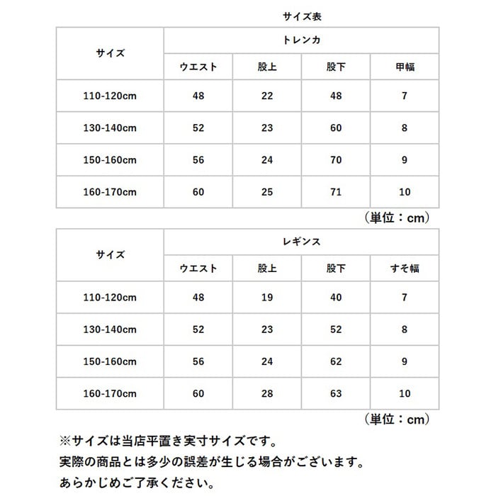 | 重量 | 約90g(※130-140cmレギンスの商品の重量です。) |