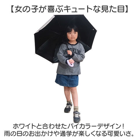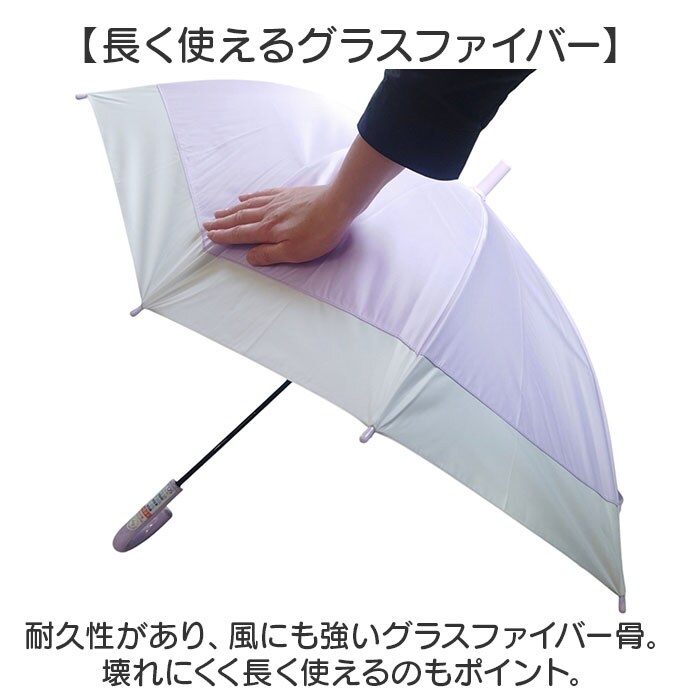 | 商品説明 | 【雨の日の通学も楽しく】可愛い傘で憂鬱な雨の日の通学も楽しく♪晴れの日も使えるキッズ用ロングアンブレラが発売。【女の子が喜ぶキュートな見た目】ホワイトと合わせたバイカラーデザイン!雨の日のお出かけや通学が楽しくなる可愛いさ。【低学年でも使いやすい】親骨50cmで長すぎず、低学年のお子さまでも使いやすいサイズ感◎【嬉しいブラックコーティング】内側にコーティングを施し、一級遮光と遮熱効果あり!日差しが強い登下校中も安心。※【さらに紫外線カット効果も】UPF50+機能で紫外線を99.9%カット♪日焼けが気になる子やお肌が弱い子にもオススメ♪※【見えやすい透明窓付き】裾の一部にクリア窓を設け、外が見えやすい設計◎【長く使えるグラスファイバー】耐久性があり、風にも強いグラスファイバー骨。壊れにくく長く使えるのもポイント。【スムーズかつ安全に開閉】開閉時に指先や爪を挟むのを防止する安全ろくろ付きで、簡単に開閉できる手開きタイプ。【たたむ時も手間取らない!】留めバンドは面ファスナーテープを採用。お子さまでも留めやすい幅広な設計。【外から見えにくいネームタグ】取り間違え防止に役立つネームタグ。ベルトの内側に縫い付けられ、プライバシーも安心。【注意事項】※透明窓部分には紫外線カット、遮熱遮光効果はありません。 |