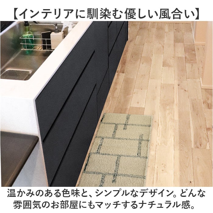 | 商品説明 | 【空間のアクセント使いにぴったり】床面をカバーして、生活をさりげなく彩る♪「kieto インテリアマット45×120」。【インテリアに馴染む優しい風合い】温かみのある色味と、シンプルなデザイン。どんな雰囲気のお部屋にもマッチするナチュラル感。【色んなシーンで活躍するマット】キッチンのシンクや、コンロ周りに。洗面台やソファ前、玄関マットとしても使えるサイズ感。【丸洗いできてお手入れがラクラク】汚れが気になったら、ネットに入れて洗濯機で単独洗い。いつも清潔をキープ。(※)洗濯機の弱モード使用。ドラム式洗濯機は、ご使用にならないでくだいさい。【床暖房対応でオールシーズン重宝】引っ越しの際の買い替えや、季節によっての使い分けも不要。【素足でも快適な踏み心地】程よい長さの毛足で、柔らかな質感。足当たりが優しく、素足で触れても心地よい♪【滑りにくくフローリングでも安心】裏面に滑りにくい加工を施し、嫌なズレをガード。床面を傷つけない柔らかな素材。 |