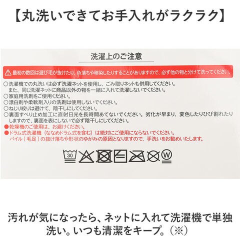 | 注意点 | 洗濯機 可 (ドラム式(ななめドラム式含む)は不可)ドライクリーニング 不可乾燥機 不可長時間日光にあたったり、摩擦、水漏れなどによる色落ちや色移りすることがあります。お取り扱いの際は、商品やパッケージなどに記載されている品質表示、アテンションタグ、ご使用上の注意事項などを必ずご確認下さい。本来の目的以外にはご使用にならないで下さい。カメラやモニターの性質により、画像と実物の色の違いがある場合がございますのでご理解願います。 |