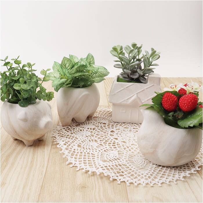 | 素材 | 【ピッグ・ハウス】 [葉]PE [器]陶器 【ゾウ】 [葉]PE、PEs [器]陶器 【バード】 [葉]PS、PE、PEs [器]陶器 |