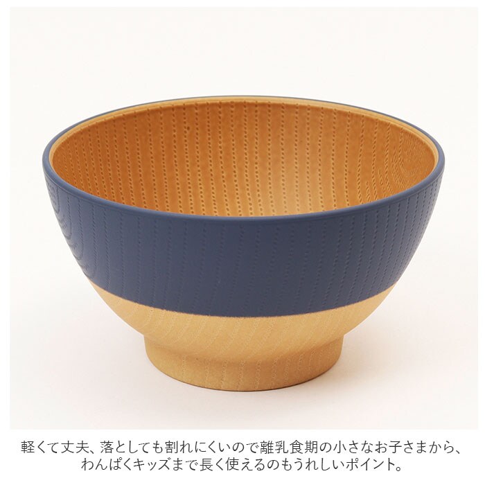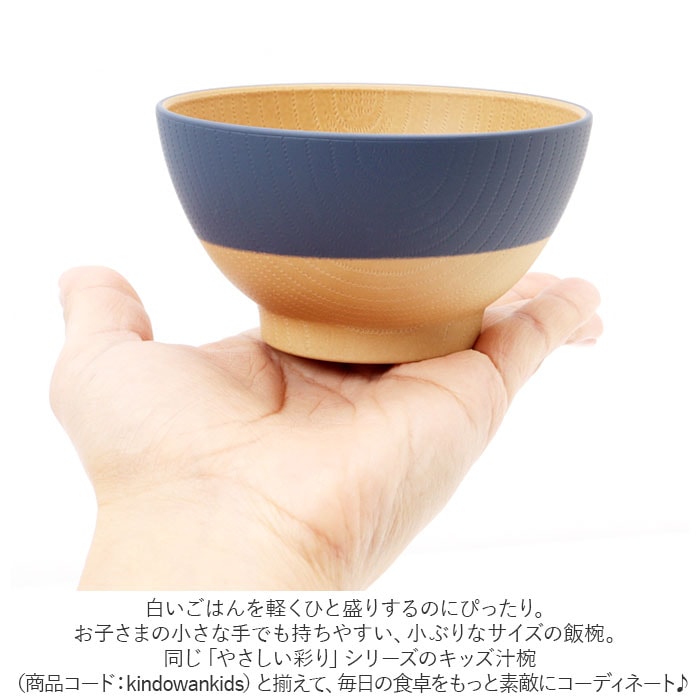 | 商品説明 | ナチュラルな木目の風合いと日本伝統の色合いが奏でるハーモニー。「やさしい彩り」シリーズに、「抗菌・キッズ飯椀」が仲間入り。「やさしい彩り」シリーズは、明るい木目調の樹脂素材を日本古来の風雅な色彩で仕上げた和食にも洋食にも映えるテーブルウェア。白いごはんを軽くひと盛りするのにぴったり。お子さまの小さな手でも持ちやすい、小ぶりなサイズの飯椀。PET・ABS樹脂素材表面に、まるで天然木の木肌のようなナチュラルな風合いを表現することで、温かみのある食卓をふんわりと演出。軽くて丈夫、落としても割れにくいので離乳食期の小さなお子さまから、わんぱくキッズまで長く使えるのもうれしいポイント。電子レンジでの温めや、食器洗浄機でのお手入れにもしっかり対応。さらに、いつでも清潔に使える抗菌仕様の塗装を施しているので、毎日の家事に忙しいママさんの強い味方!(※500W~600Wの電子レンジをご使用の際は、1分以上の加熱はしないでください。)表面の塗装は、樹脂製の素地に、石川県加賀市・山中温泉地区に伝わる塗装技法「山中塗り(やまなかぬり)」を施したもの。同じ「やさしい彩り」シリーズのキッズ汁椀(商品コード:kindowankids)と揃えて、毎日の食卓をもっと素敵にコーディネート♪瑠璃(るり)・茜(あかね)・鶯(うぐいす)など、昔ながらの日本の情緒を感じさせる優しいカラーリングも魅力のひとつ。安心の日本製品。 |