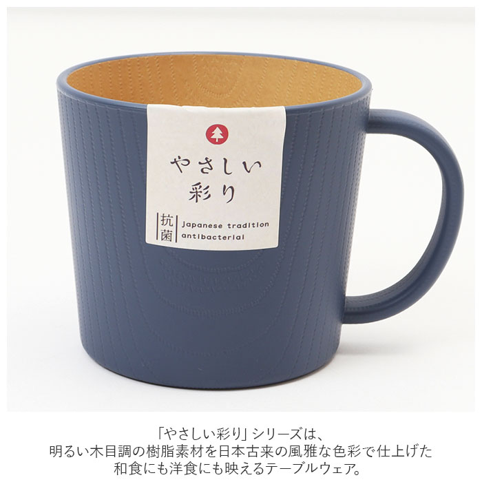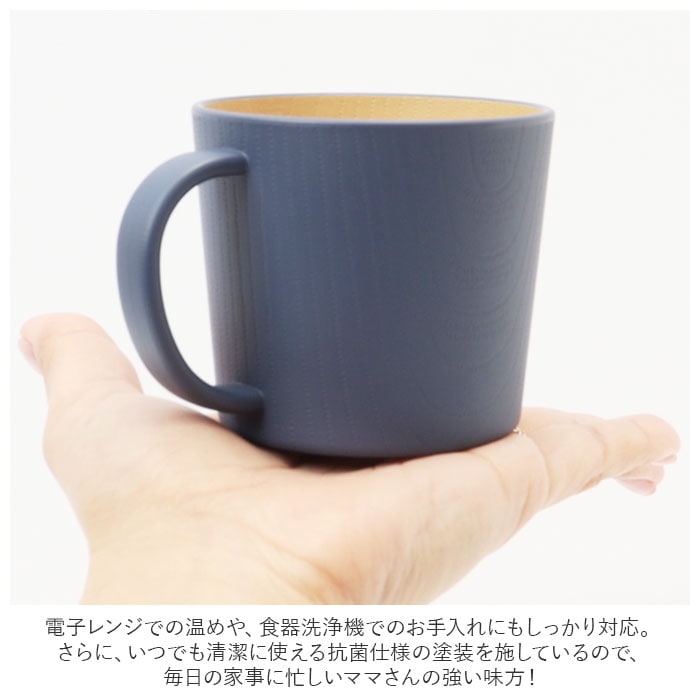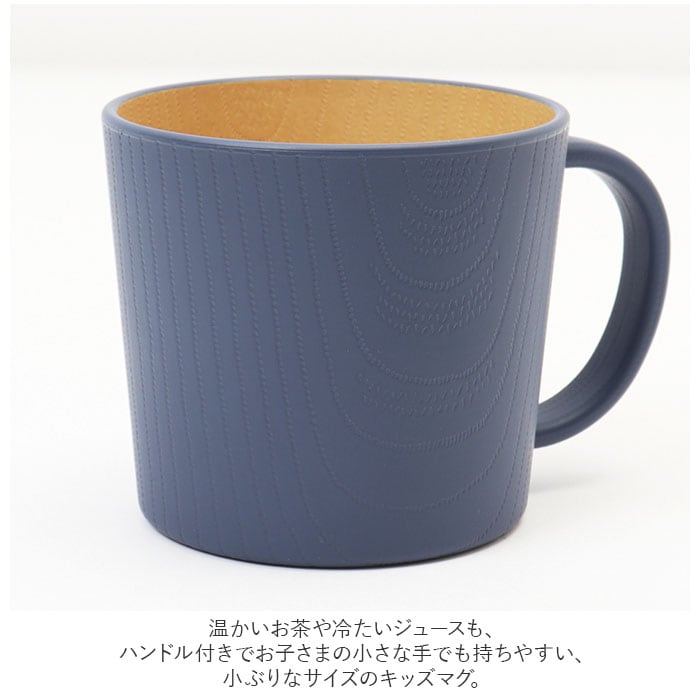 | 商品説明 | ナチュラルな木目の風合いと日本伝統の色合いが奏でるハーモニー。「やさしい彩り」シリーズに、「抗菌・キッズマグカップ」が仲間入り。「やさしい彩り」シリーズは、明るい木目調の樹脂素材を日本古来の風雅な色彩で仕上げた和食にも洋食にも映えるテーブルウェア。温かいお茶や冷たいジュースも、ハンドル付きでお子さまの小さな手でも持ちやすい、小ぶりなサイズのキッズマグ。PET・ABS樹脂素材表面に、まるで天然木の木肌のようなナチュラルな風合いを表現することで、温かみのある食卓をふんわりと演出。軽くて丈夫、落としても割れにくいので離乳食期の小さなお子さまから、わんぱくキッズまで長く使えるのもうれしいポイント。電子レンジでの温めや、食器洗浄機でのお手入れにもしっかり対応。さらに、いつでも清潔に使える抗菌仕様の塗装を施しているので、毎日の家事に忙しいママさんの強い味方!(※500W~600Wの電子レンジをご使用の際は、1分以上の加熱はしないでください。)表面の塗装は、樹脂製の素地に、石川県加賀市・山中温泉地区に伝わる塗装技法「山中塗り(やまなかぬり)」を施したもの。瑠璃(るり)・茜(あかね)・胡桃(くるみ)など、昔ながらの日本の情緒を感じさせる優しいカラーリングも魅力のひとつ。安心の日本製品。 |