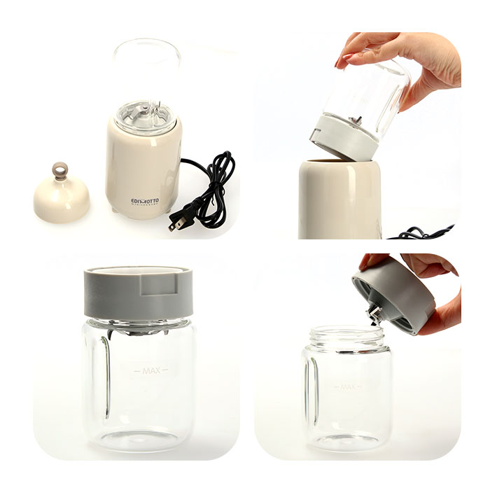 | 注意点 | [電源]AC100V 50/60Hz[定格消費電力]200W[定格時間]1分用途目的外のご使用はおやめください。ご購入後初めてご使用になるとき、長期間ご使用にならないときは、ご使用の前後に必ず各部品を洗浄してください。定格15A・交流100Vのコンセントをご使用ください。延長コードをご使用される場合も定格15Aのものをご使用ください。タコ足配線はしないでください。火災の原因となります。電源コードを傷つける・破損させる・加工する・無理に曲げる・引っ張る・ねじる・束ねる・重いものを載せる・挟み込むなどの行為をしないでください。火災や感電の原因となります。電源コードが傷ついている、電源プラグの差し込みがゆるい場合はご使用をおやめください。感電・ショート・発火の原因となります。電源プラグは根本までしっかり差し込んでください。感電・ショート・発火の原因となります。本体や電源プラグ、電源コードを水につけたり、水をかけたりしないでください。感電・ショート・発火の原因となります。濡れた手で電源プラグの抜き差しをすると感電のおそれがありますのでおやめください。電源プラグの周りにホコリやゴミが付着しているときは拭き取ってください。湿気などで絶縁不良となりショートや火災の原因となります。使用時以外は電源プラグをコンセントから抜いてください。電源プラグを抜く際は、電源コードを持たず必ず電源プラグを持って引き抜いてください。本製品及び各部品は乳幼児及びペットの手の届かない所に保管してください。本体の隙間にピンや針金などの金属物を入れないでください。感電やケガの原因となります。本製品に異常を感じたときは、すぐにご使用をおやめになり、カスタマーセンターまでお問合せください。事故や破損の原因となります。本製品をご使用になる際は必ず大人が操作してください。お子様だけでのご使用は、ケガなど思わぬ事故の原因となります。ご使用のたびに、各部品にキズなどの異常がないか確認してからご使用ください。本製品が破損した際は、破損した部分に触れたりそのまま使用し続けたりしないでください。感電やケガの原因となります。不安定な場所や滑りやすい場所でのご使用はおやめください。転倒や落下などによる破損・故障・ケガなどの原因となります。1回の運転時間は1分以内とし、次の使用時間までに5分以上の十分な冷却時間をとってください。また水分の少ない食材は、運転時間を10秒以内にし、中の様子を確認しながらご使用ください。食材の入れすぎ、少なすぎにご注意ください。何も入っていない状態やプレードなしでのご使用はおやめください。食品以外の物を入れないでください。破損や故障の原因となります。食材が多すぎるなどの原因によりモーターの回転が止まった場合は直ちに運転を止め、食材の量を調整してください。食材により、プレードでかくはんされていない状態が続く場合は、運転を止め、食材が均等にプレードに当たるよう動かしてください。熱い食材を入れてかくはんしないでください。やけどや故障の腕因となります。容器を取り付けていない状態でブレードを本体にセットしないでください。ブレードの刃は鋭利なため、直接手で触れないでください。ケガをするおそれがあります。運転中は移動させないでください。物を強くぶつけたり、高い所から落下させたりして街撃を与えないでください。故障の原因となります。本製品及び各部品は火気の近くや車内などの高温になる場所、直射日光の当たる場所、振動・衝撃を受けやすい場所での放置やご使用はおやめください。故障や変形の原因となります。カメラやモニターの性質により、画像と実物の色の違いがある場合がございますのでご理解願います。 |