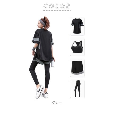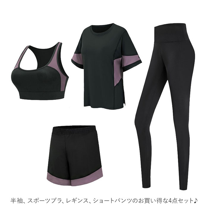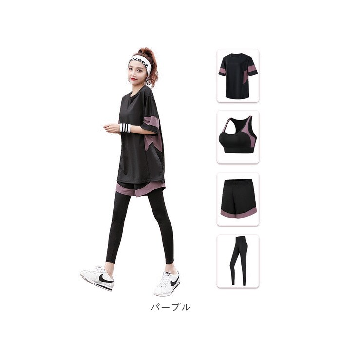 | 商品説明 | ジムでのトレーニングやランニング時に活躍!スポーツウェアセットが登場。半袖、スポーツブラ、レギンス、ショートパンツのお買い得な4点セット♪伸縮性があり、動きやすい♪通気性にも優れ運動している時でも蒸れにくく快適に過ごせる!半袖のトップスは胸元が見えないラウンドネックタイプ。ブラはカップの取り外しができ、外して洗えば洗濯時型崩れの心配ナシ。ショートパンツは裾にゆとりにあるデザインだから、レギンスと一緒に穿けば気になるお尻や太ももまわりのシルエットをカバーしてくれる。セットアップだからコーデに迷わず着こなせる。スポーツ時だけじゃなくお家でのリラックスタイムの使用にもおススメ。 |