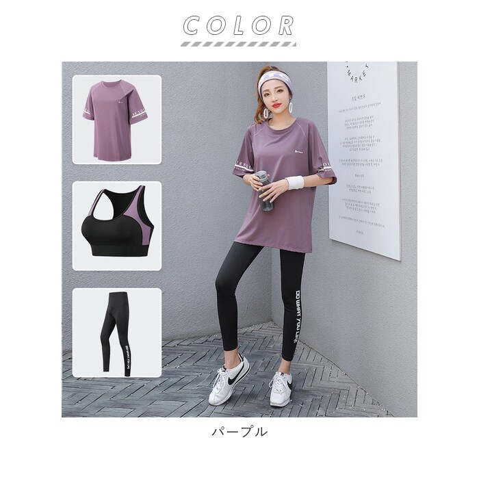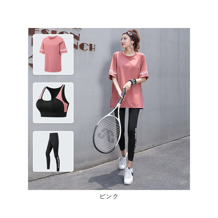 | 商品説明 | ジムでのトレーニングやランニング時に活躍!スポーツウェアセットが登場。半袖、スポーツブラ、レギンスのお買い得な3点セット♪伸縮性があり、動きやすい♪通気性にも優れ運動している時でも蒸れにくく快適に過ごせる!半袖のトップスは胸元が見えないラウンドネックタイプ。セットアップだからコーデに迷わず着こなせる。スポーツ時だけじゃなくお家でのリラックスタイムの使用にもおススメ。 |