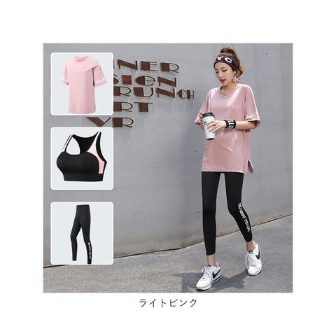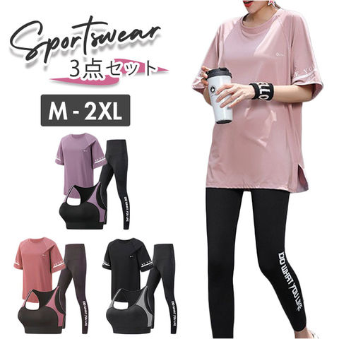 スポーツウェア 3点セット 春夏秋 kjoy323【ライトピンク】【2XLサイズ】