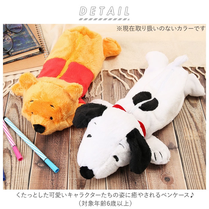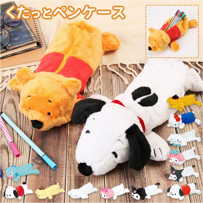 | 商品説明 | くたっとした可愛いキャラクターたちの姿に癒やされるペンケース♪(対象年齢6歳以上)ぬいぐるみのような、ふわふわの手触りが気持ちいい◎背中のファスナー内側が収納スペースになったユニークなつくり。小物がたっぷり入るのでペンケースとしてはもちろん、コスメポーチとしても使える!お気に入りのキャラクターを身近に置いて、毎日のモチベーションアップに♪ |